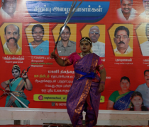 performing a 115-minute continuous fusion of Bharatanatyam and eight traditional martial arts weapons